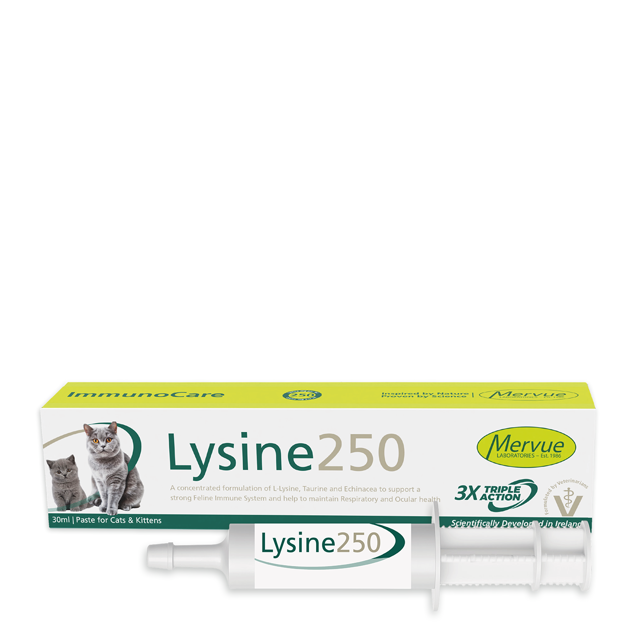 Each ml of Lysine 250 contains 250mg of Lysine HCI in a highly palatable base with Echinacea to support immunity. Lysine 250 is highly palatable and is easily accepted by most cats, safe, easy-to-administer and affordable.